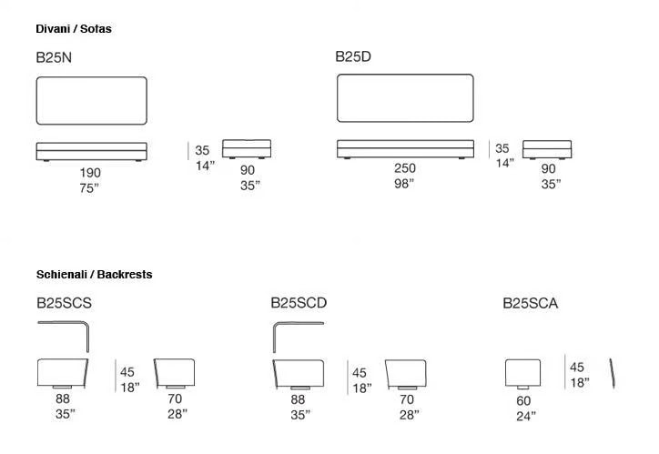 Kissenpolsterung: abnehmbar, erhältlich in den Stoffen Luz, Rope T oder Brio.