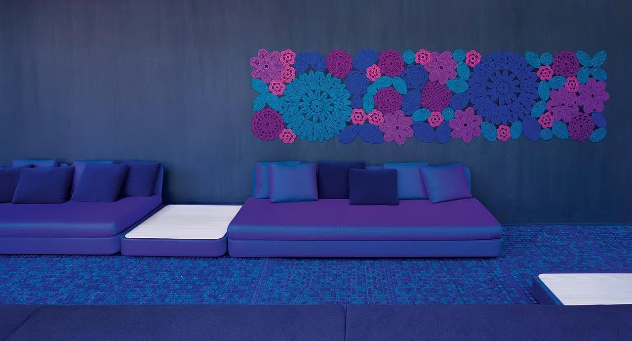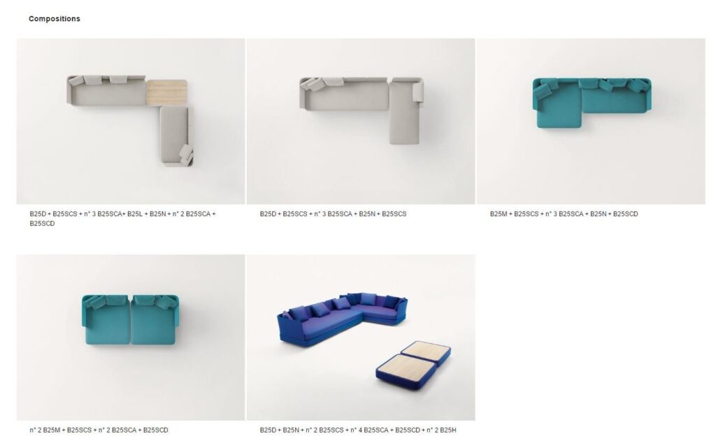 Diese Serie besteht aus modularen Plattformen und Poufs. Um die gewünschte Konfiguration zu erhalten, werden die Plattformen mit der gewünschten Anzahl von abnehmbaren Arm- und Rückenlehnen ergänzt. Die Serie Cove umfasst auch einen Sessel, eine Liege mit verstellbarer Rückenlehne und Beistelltische.