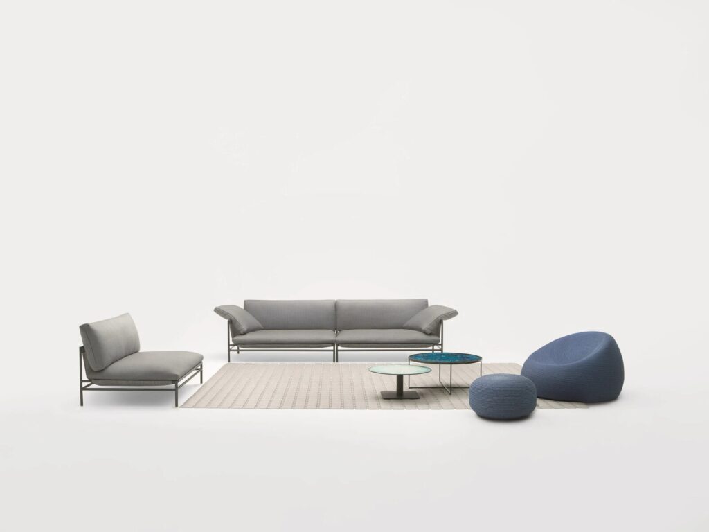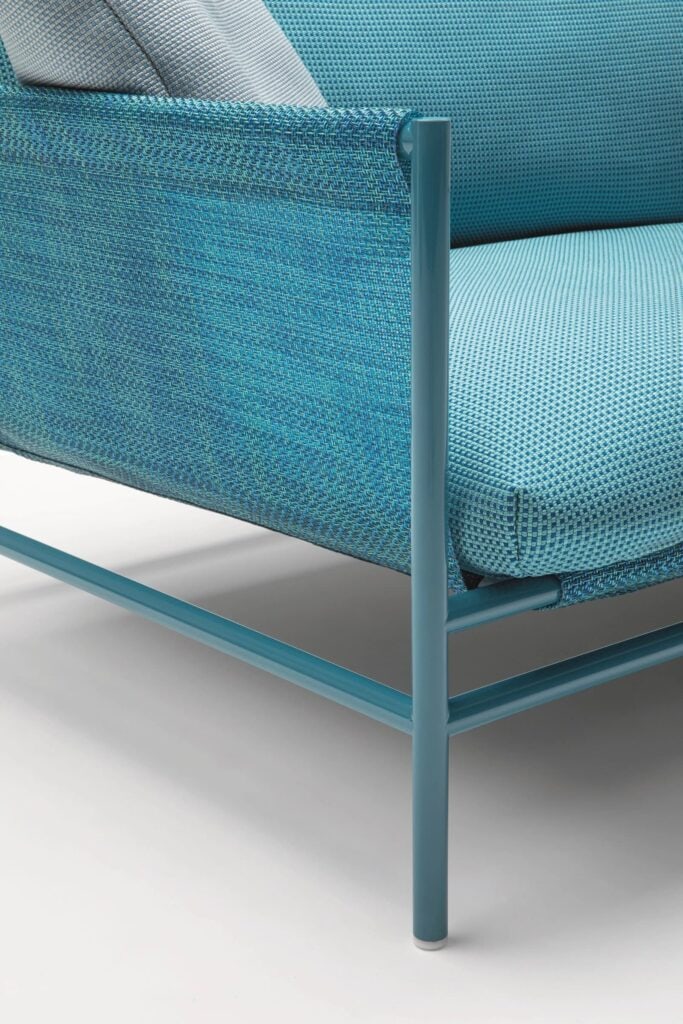 Sitz- und Rückenkissen: abnehmbar, erhältlich in den Stoffen Luz, Rope T, Brio, Thea oder Wara.