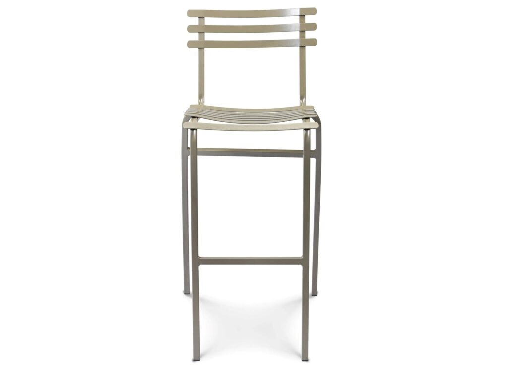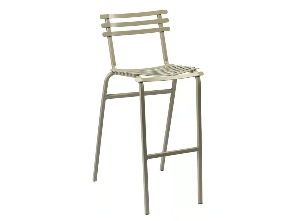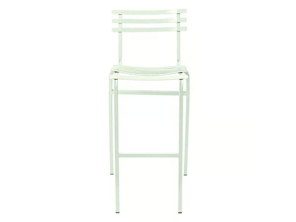 Hoher Gartenhocker aus farbigem Metall.