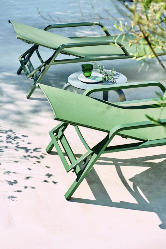Stapelbarer Gartenliege aus Batyline® mit Armlehnen