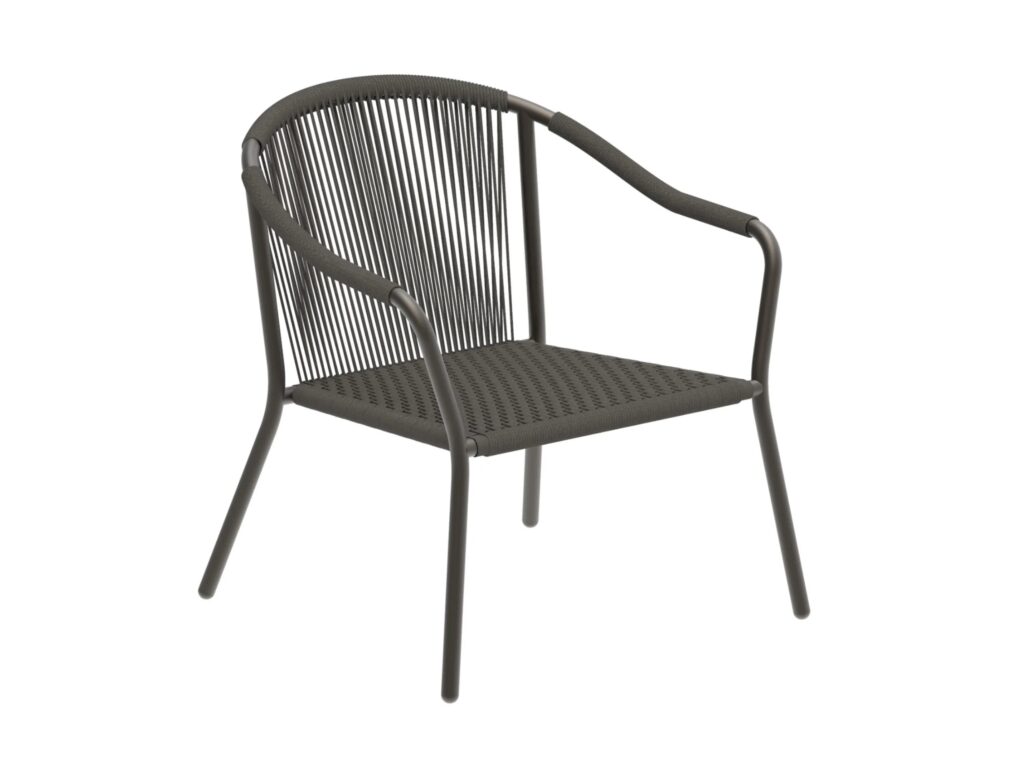 Samba ist ein stapelbarer Gartensessel aus Olefinfasern mit Armlehnen.