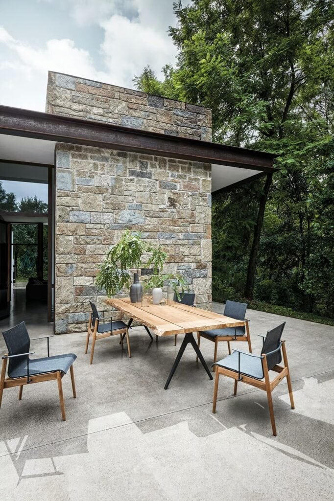 Bei der Sway-Kollektion hat der dänische Designer Henrik Pedersen ein fein proportioniertes Teakholzgestell mit einem praktischen Sling-Sitz und einer Rückenlehne kombiniert, um trotz eines extrem minimalen Profils einen inhärenten Federkomfort zu bieten.