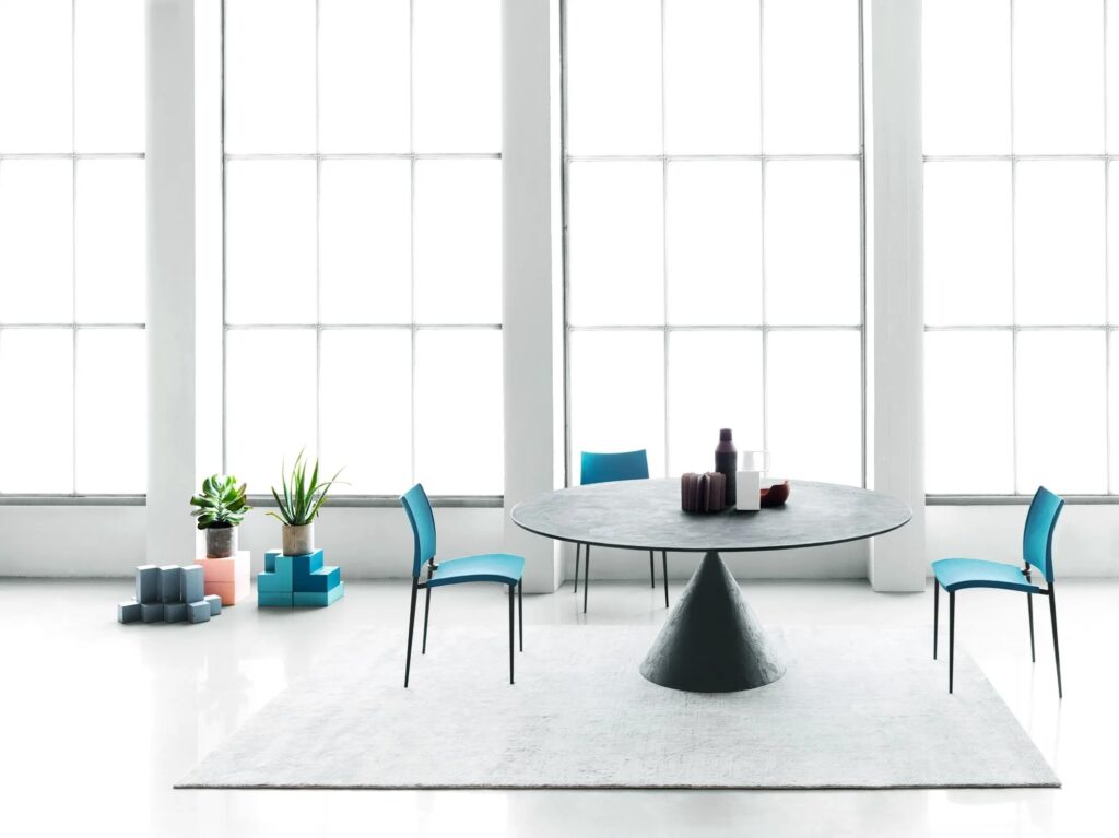 Stapelbarer Stuhl mit oder ohne Armlehne, Gestell aus Aluminiumdruckguss. Sitz und Rücklehne aus UV-resistenem. glasfaserverstärktem Polypropylen. Lackierte Fussgestelle mit Polypropylen auch für Outdoor. Auch verfügbar mit Bezug aus Gewebe, Leder, Kunstleder und Kernleder.