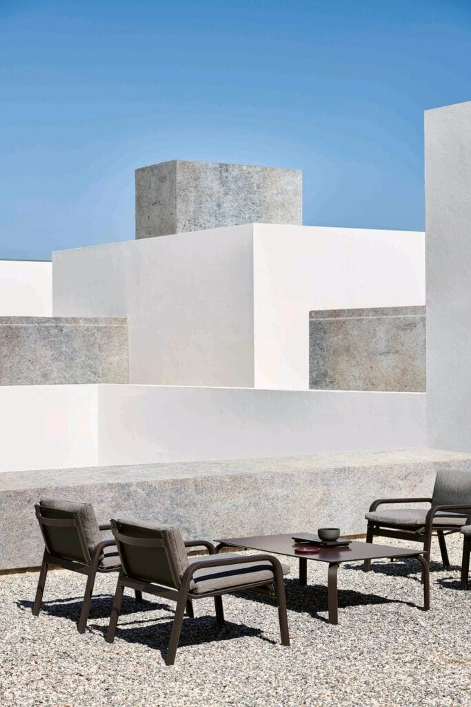 “Stack ist eine stapelbare Aussenmöbel-Kollektion, deren Design von der Welt der Nautik inspiriert ist und an den Stil der 60er und 70er Jahre erinnert. Eine klare, geradlinige Gestaltung hat schlichte Möbelstücke mit harmonischen Formen entstehen lassen, die sich dank der verwendeten Materialien und des die gesamte Kollektion dominierenden Formkonzepts durch eine grosse Leichtheit auszeichnen. Die Stücke bestehen aus einem Rahmen aus stranggepresstem Aluminium, auf den ein selbsttragendes Gewebe aufgebracht wird, eine echte Innovation bei GANDIABLASCO, wodurch eine einfache und zugleich sehr leichte und bequeme Konstruktion geschaffen wird. Das Ergebnis ist eine Serie von Möbelstücken, die mit Attributen ausgestattet sind, die sie sowohl für grosse Objekteinrichtungen als auch für kleinere Wohnbereiche geeignet machen.”