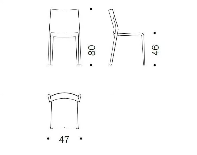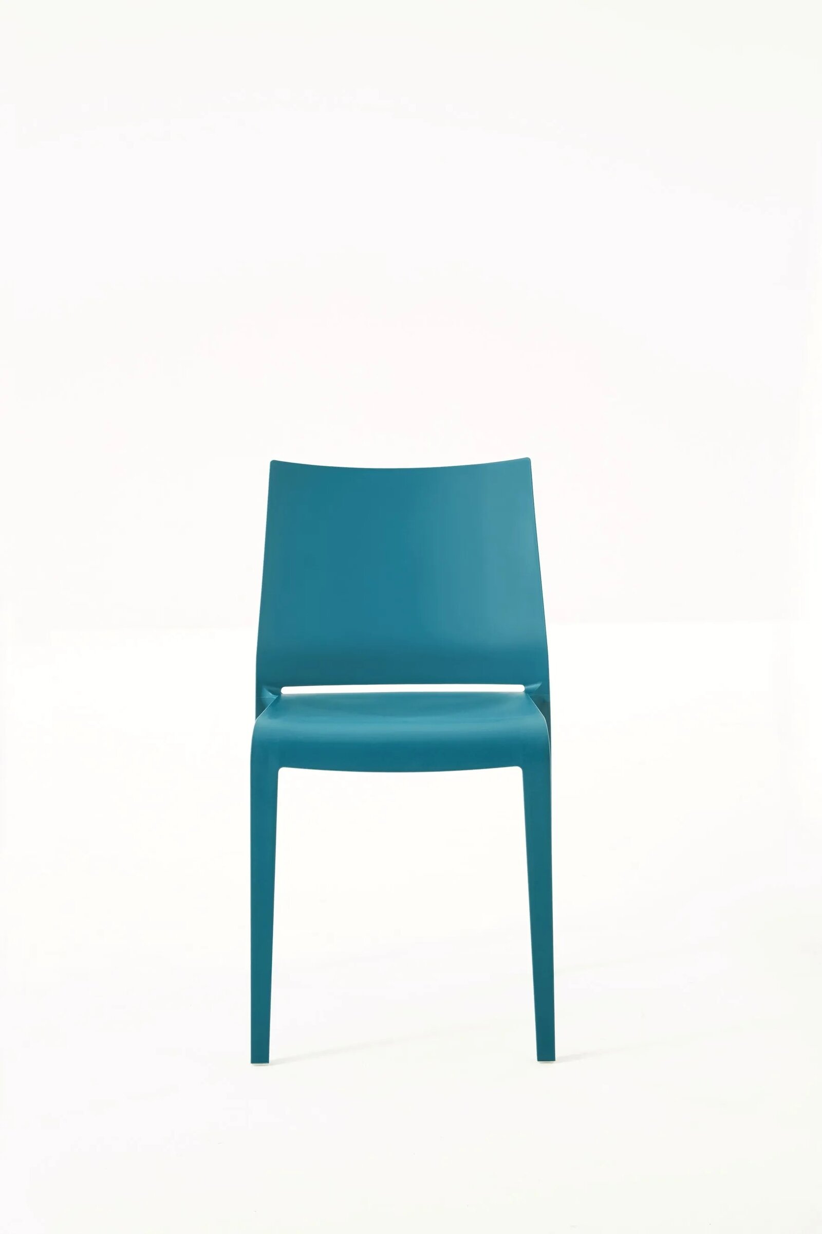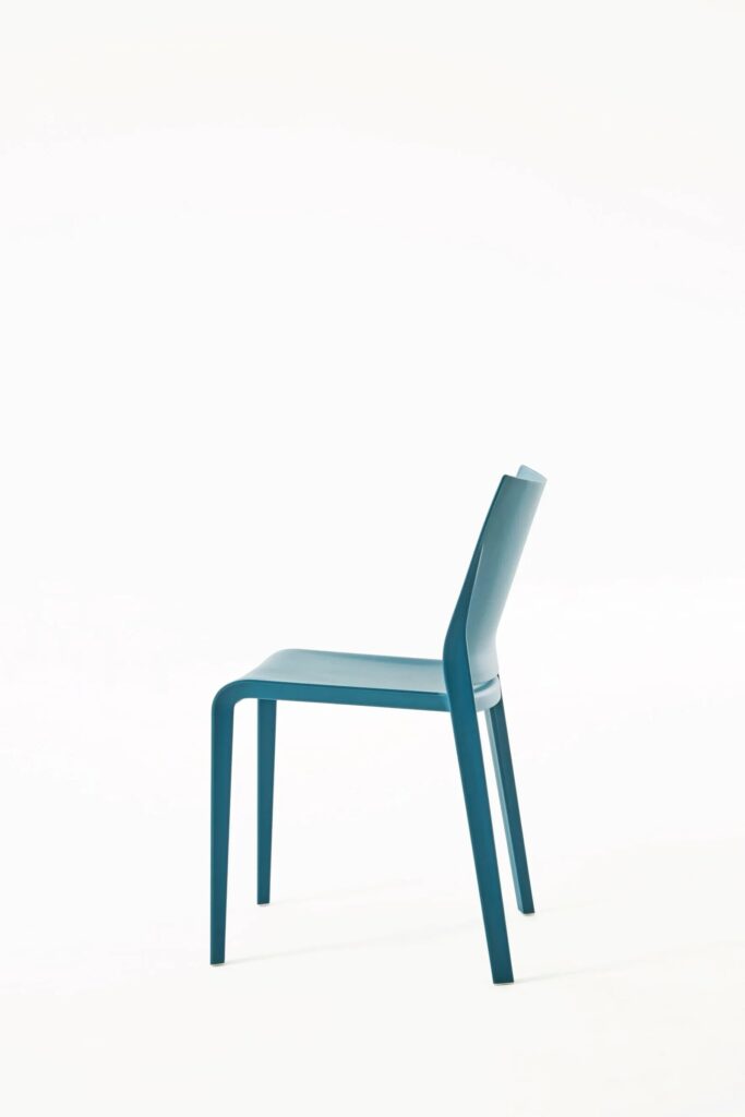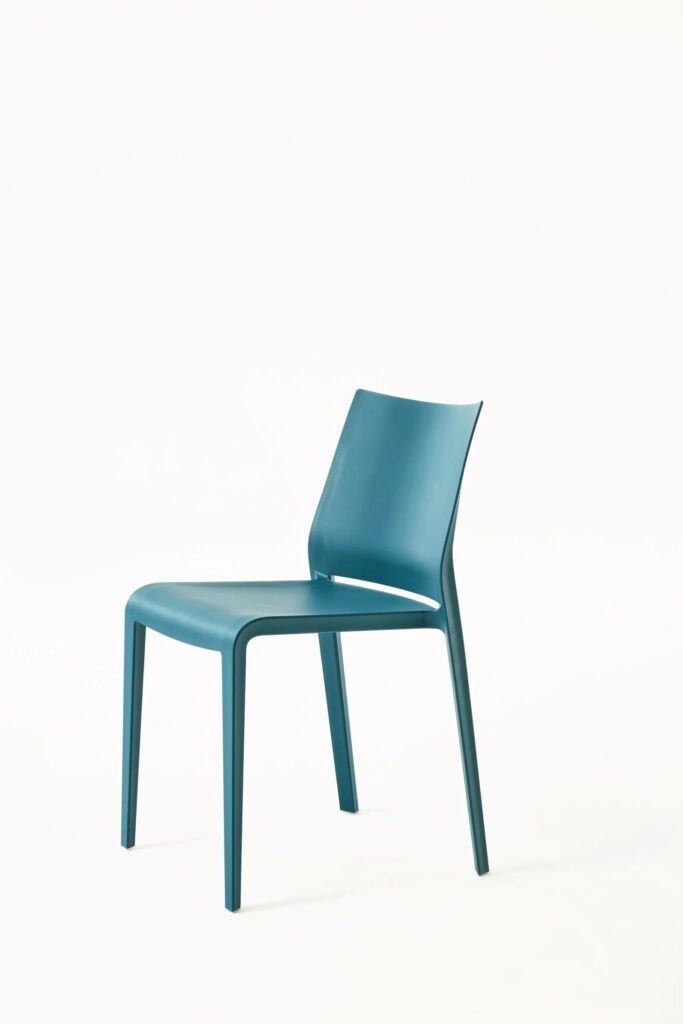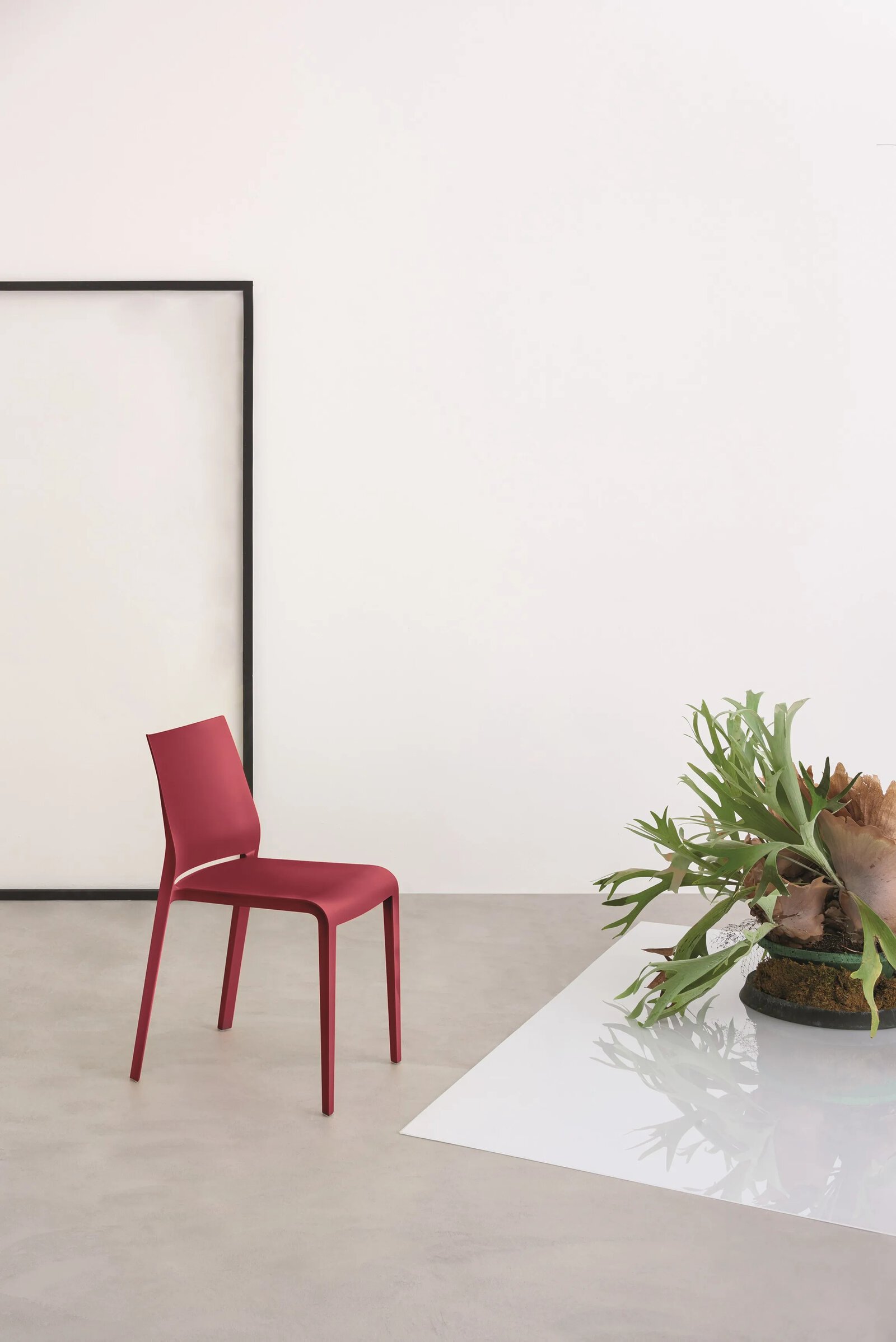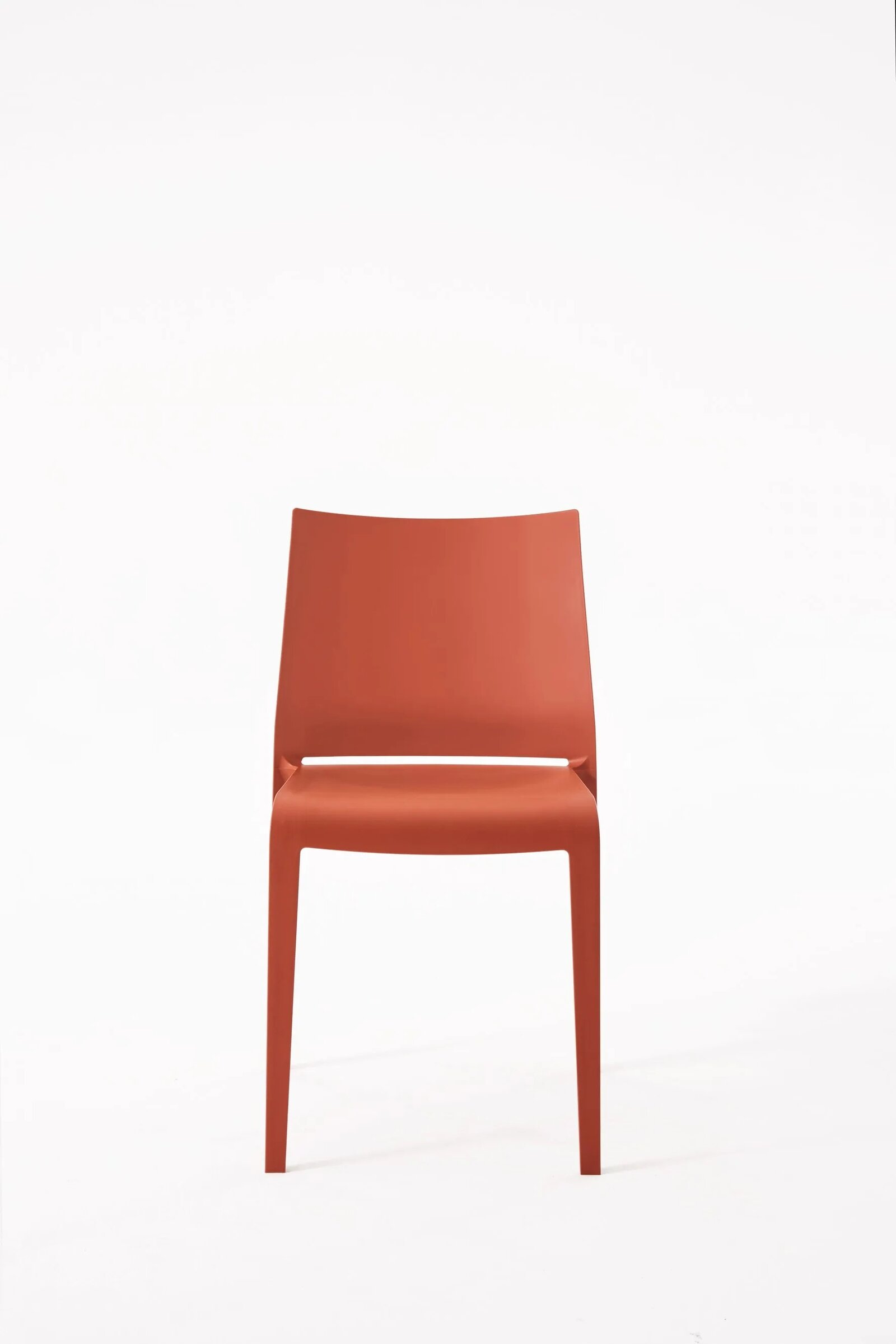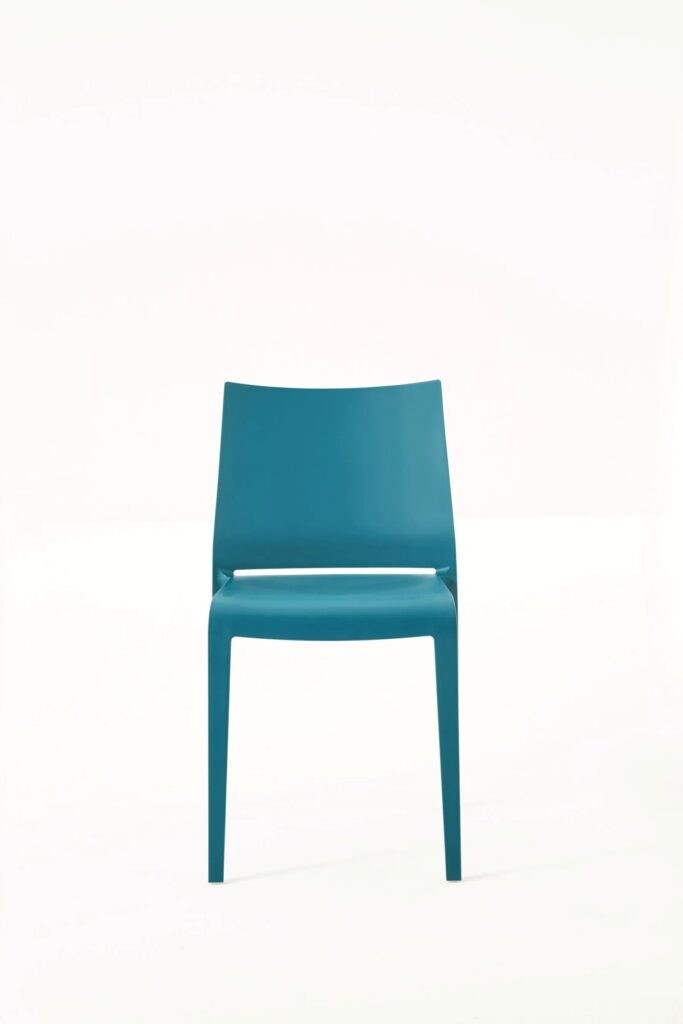 Stapelbarer Stuhl aus UV-resistentem, glasfaserverstärktem Polypropylen, Pressgussverfahren mit “air-moulding”-Technologie, auch für Outdoor geeignet.