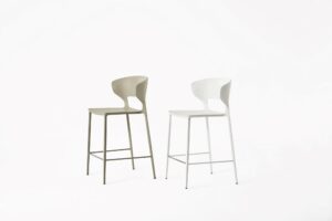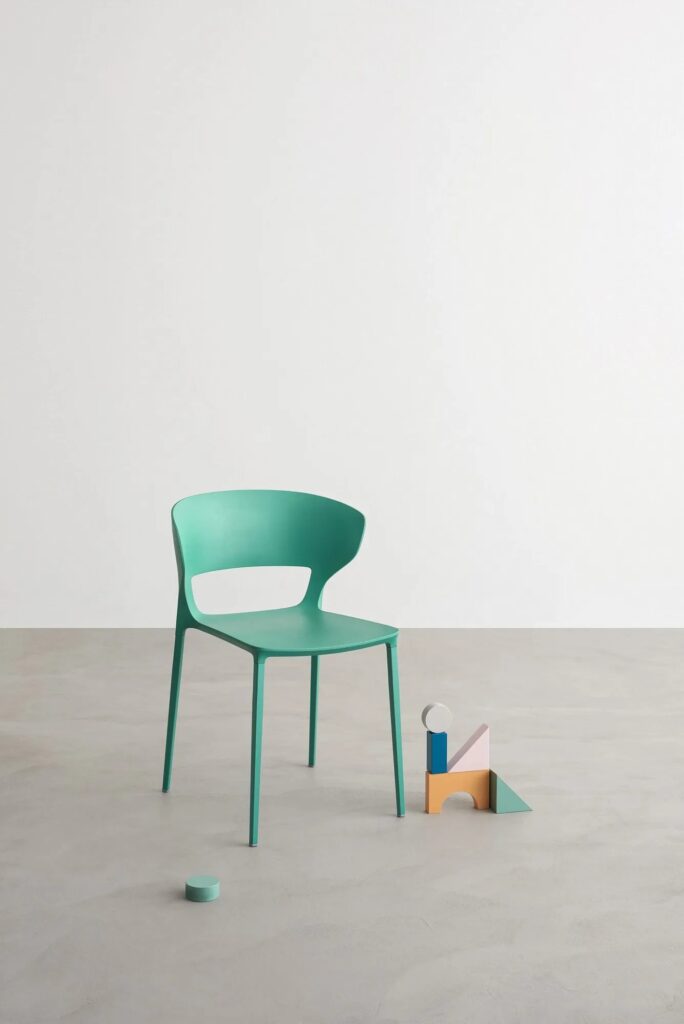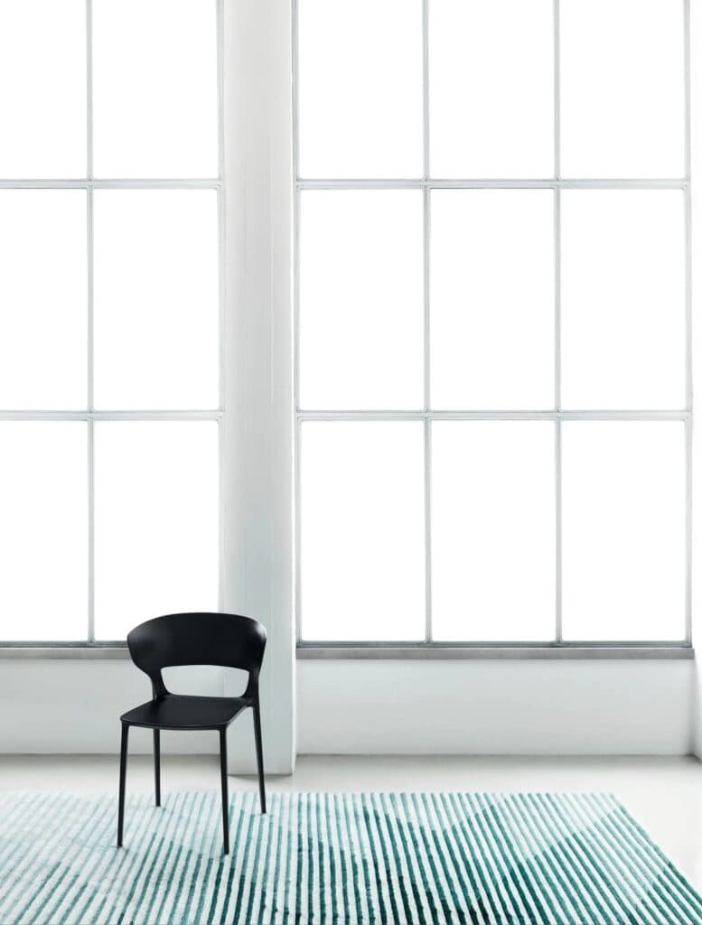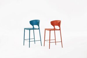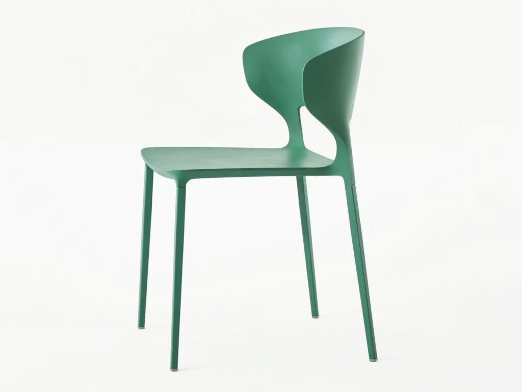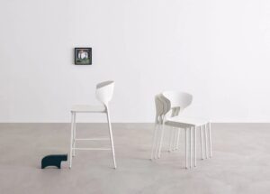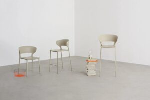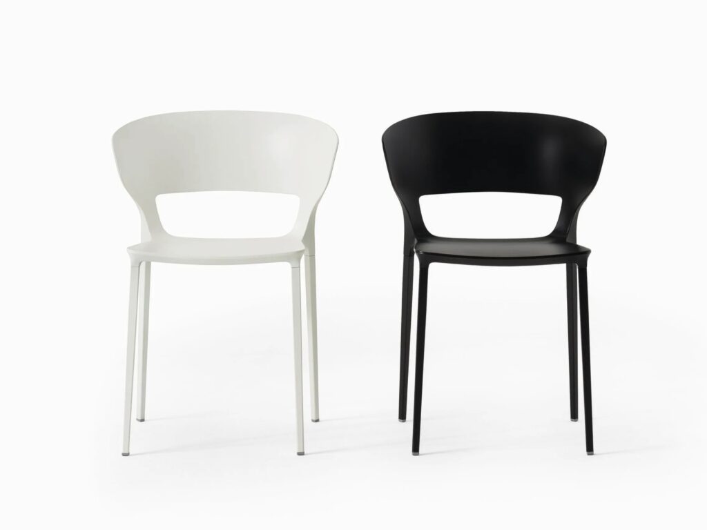 System von Stühlen mit Sitzschale aus BAYDUR®, mit oder ohne Armlehne. Struktur mit 4 Beinen aus Rundstahl, Kufengestell oder mit drehbarer Höhenverstellbarbasis.