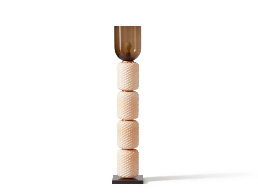 Stehleuchte aus mundgeblasenem Glas mit Marmorsockel