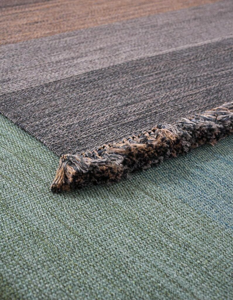 Color and connection to the landscape are at the heart of the collection: the result is a space of great harmony where the rug interacts with the environment and welcomes both furniture and people. Available in both warm and cool hues. All variants are completed with a fringe, placed on the 3-meter side.