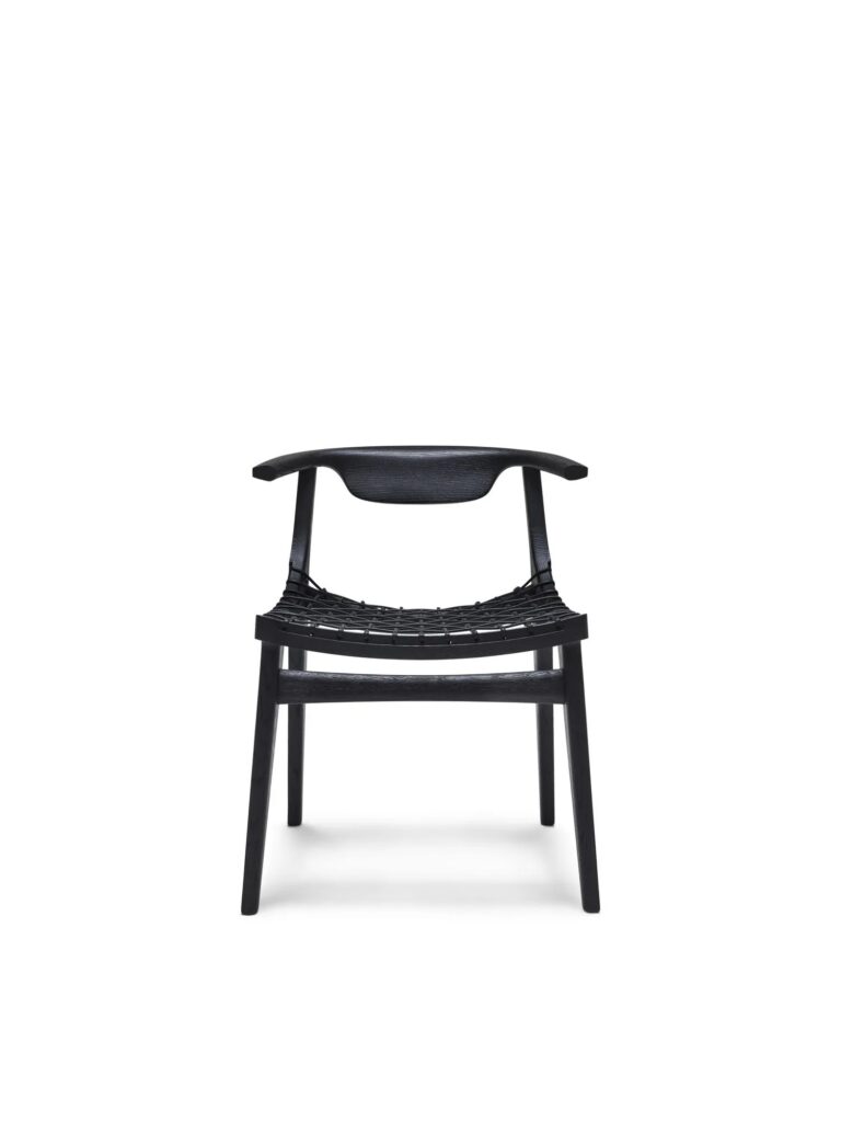 Das Gestell ist in Eiche natur oder schwarz. Verflochtene Baumwollschnur in Natur oder Schwarz, passend zur Farbe des Gestells. Das Kissen ist wahlweise in naturfarbenem oder schwarzem Leder erhältlich. Die Polsterung der optionalen Kissen ist aus natürlichem Material pflanzlichen Ursprungs.