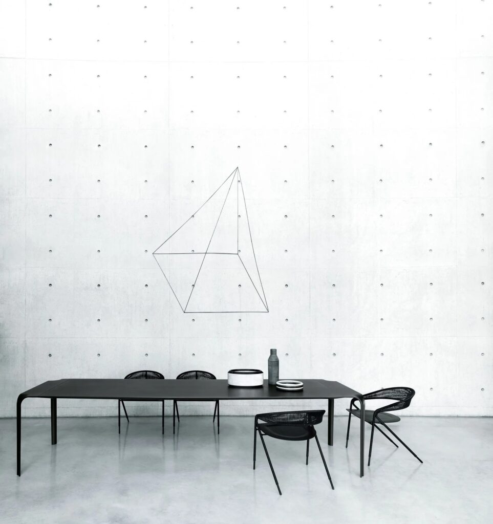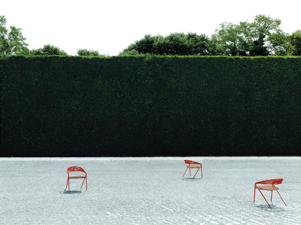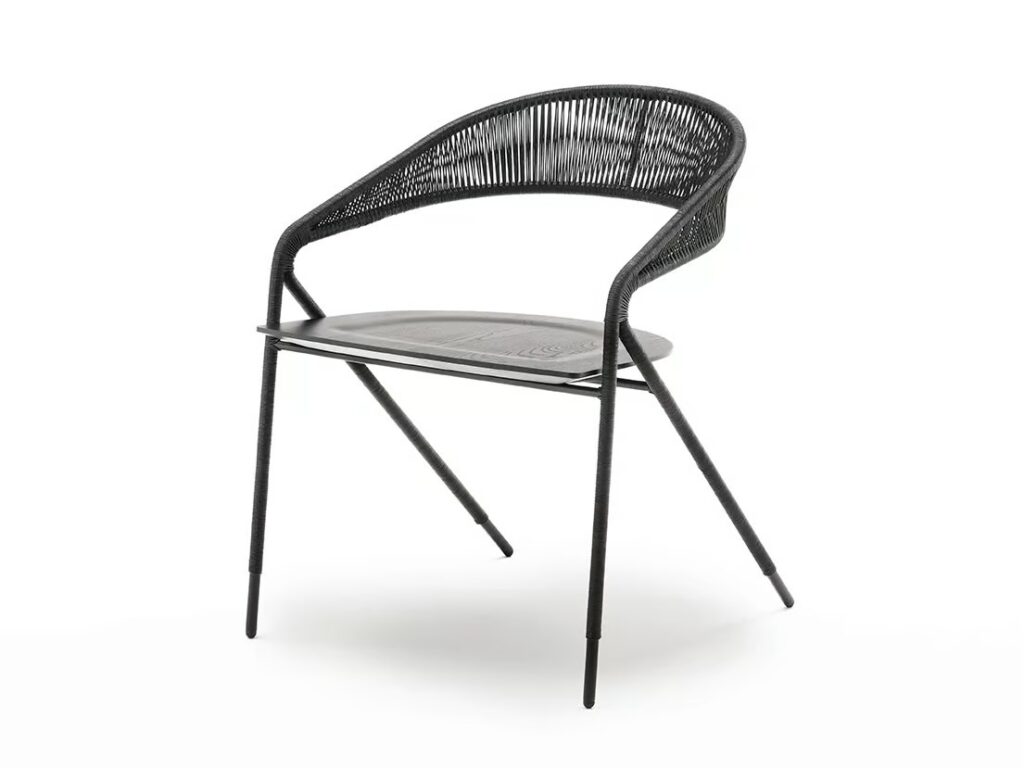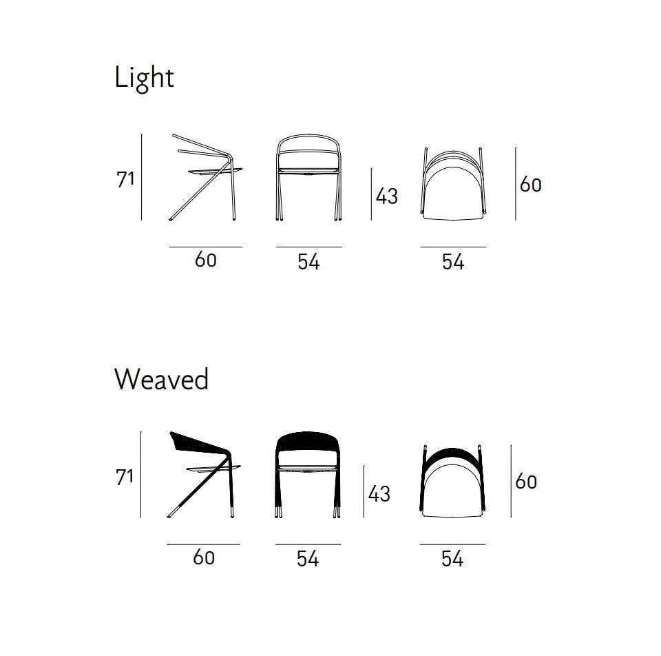 Stuhl entwerde für den Innen oder den Aussenbereich, in der Version „Light“ nur Struktur oder mit Bespannung in den Materialien der Kollektion.