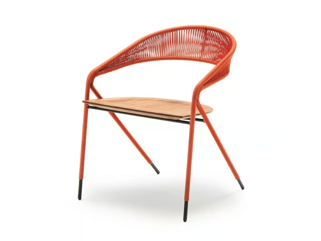 Stuhl entwerde für den Innen oder den Aussenbereich, in der Version „Light“ nur Struktur oder mit Bespannung in den Materialien der Kollektion.