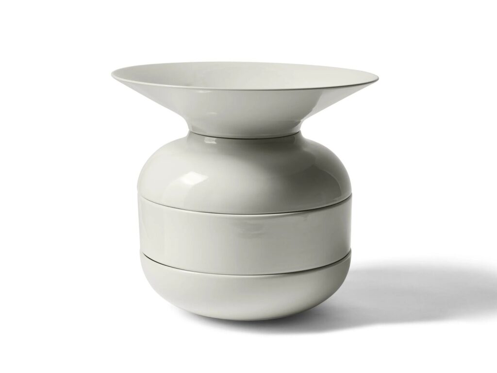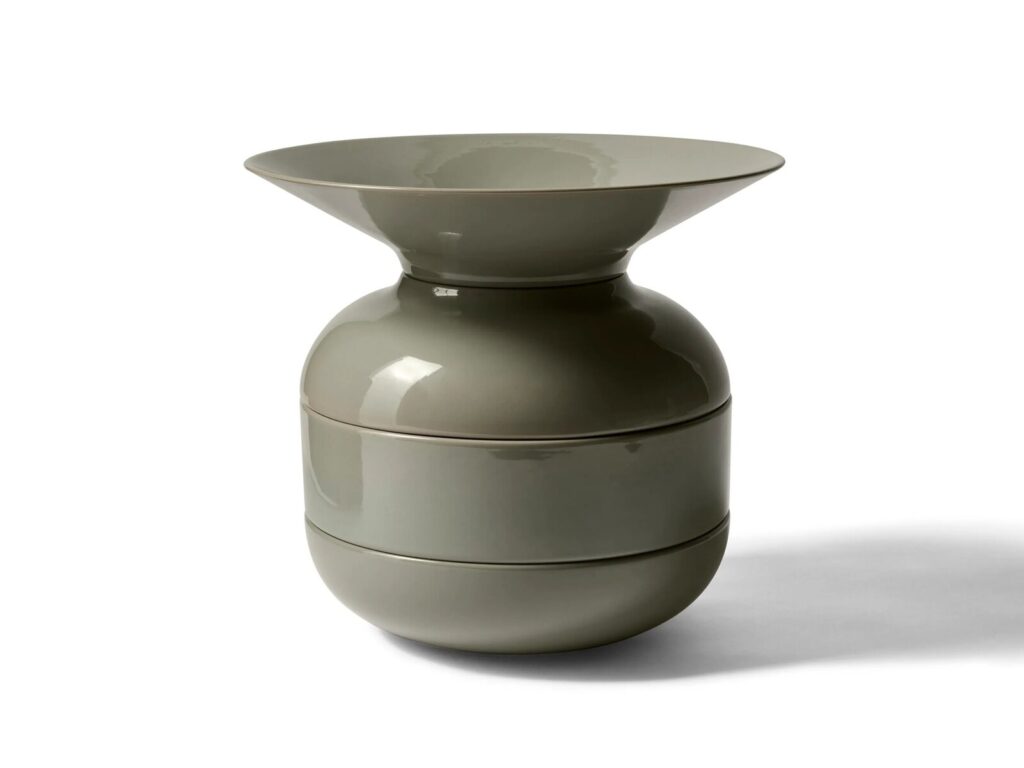 TORRECOTTA ist ein reizvolles Nebeneinander von Funktionen, die einzeln oder in Kombination, als Tafelaufsatz oder als Gestaltungselement verwendet werden können. Die von Chefkoch Davide Oldani in Zusammenarbeit mit dem Designer Attila Veress entwickelte Kollektion besteht aus vier emaillierten Keramikobjekten, die auf verschiedene Weise gestapelt werden können, um einen sehr szenischen Effekt zu erzielen. Das modulare System TORRECOTTA erfüllt sowohl praktische als auch dekorative Zwecke, denn jedes Gefäss, das in den Farben Gesso (Kreide), Grigio (Grau) und Cobalto (Kobalt) erhältlich ist, kann auf vielfältige Weise verwendet werden: als Schale, in der Sie Ihre Lieblingsrezepte servieren können, als Schmuckbehälter, als Vase für eine kleine Blume und als Deckel, der zu einem Teller für Obst der Saison oder sogar zu einer Servierplatte wird. Auf dem Boden jedes Behälters befindet sich ein Dekan mit dem Namen des Produkts und der Autoren sowie dem Cassina-Logo.