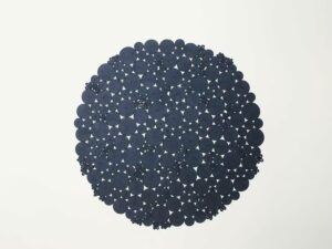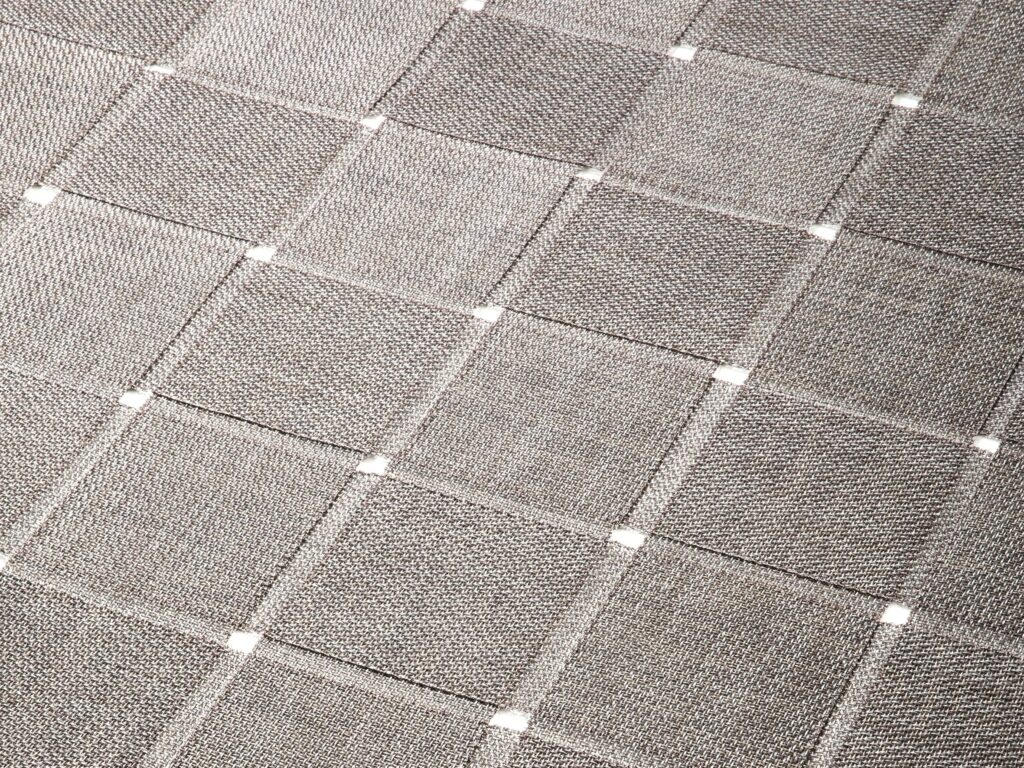 Durch die Lücken zwischen den Elementen, die durch dieses Kreuzungssystem entstehen, sowie durch die Gewebebindung wird der Boden sichtbar.