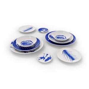 Le Monde de Charlotte Perriand: eine neue Geschirrkollektion, inspiriert von ihrer Leidenschaft für die Natur: Cassina setzt seine Zusammenarbeit mit Ginori 1735 fort und präsentiert das feinste Porzellanservice, das von der Fotografie Charlotte Perriands inspiriert ist. Handdekoriert und mit Mustern versehen, die die Farben Blau und Weiss kombinieren, ist dieses auffällige Tellerset der perfekte Vorschlag, um jede Tafel zu verschönern.