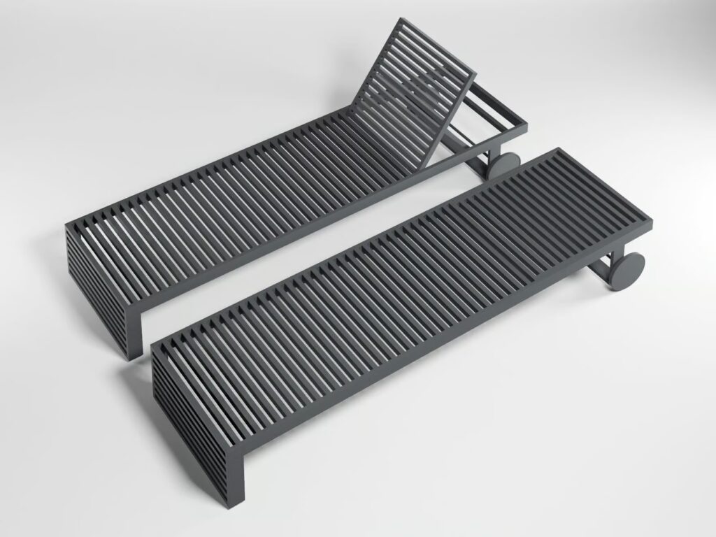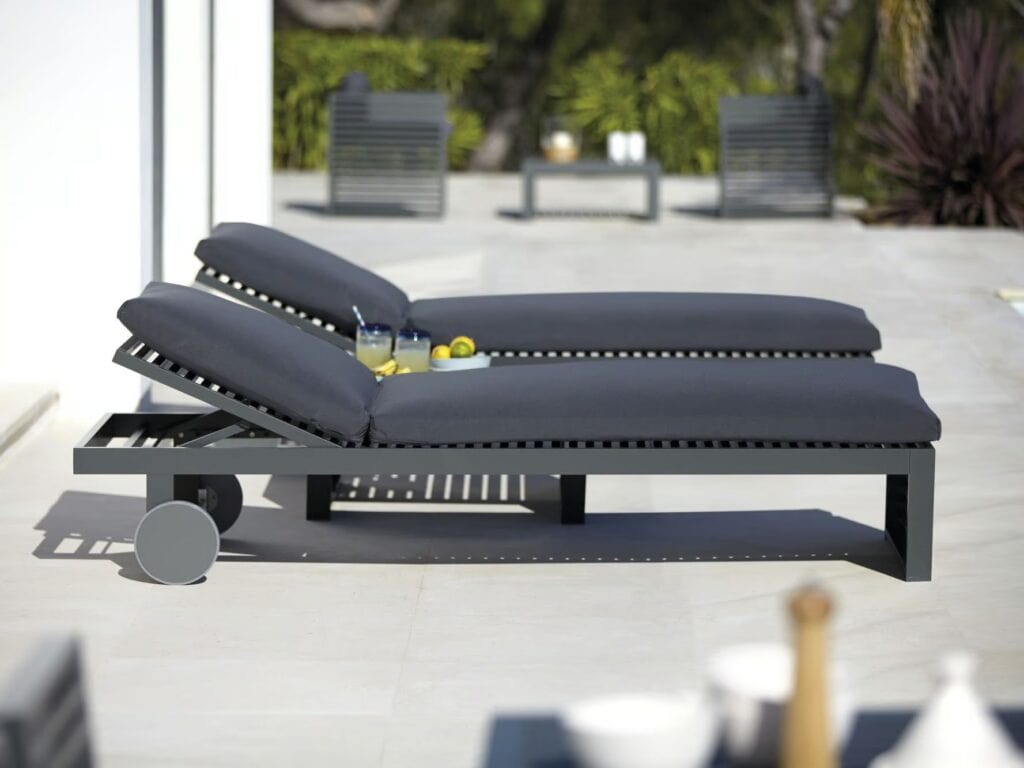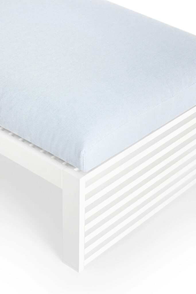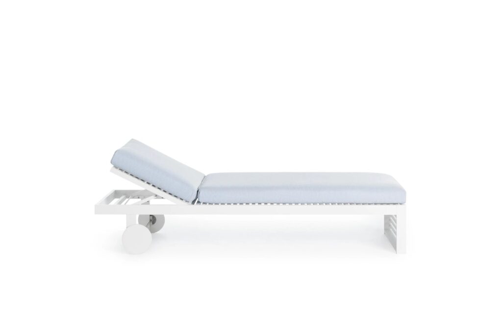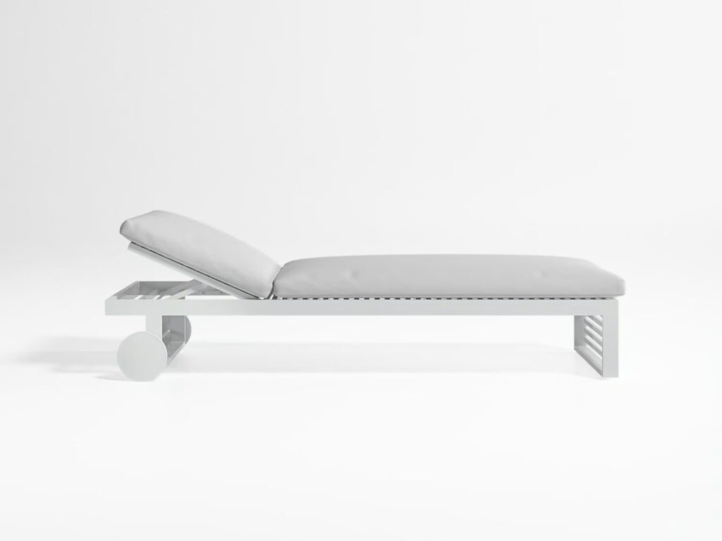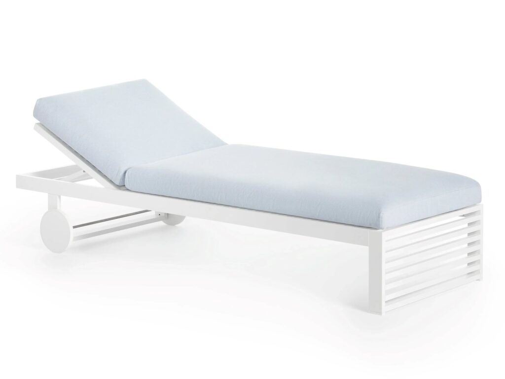 Hergestellt aus eloxiertem oder thermolackierten Aluminium. Polyurethan-Schaumstoff mit einem wasserabweisendem Bezug. Abziehbarer Bezug.