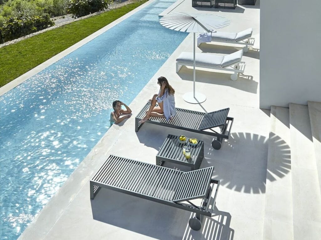 DNA ist eine Kollektion von Möbeln für den Aussenbereich, die durch das subtile Spiel der Licht- und Schattenmodulationen der mediterranen Fensterläden und das Lob des Schattens der japanischen Ästhetik in der traditionellen und zeitgenössischen Architektur inspiriert wurde – das Positive und das Negative ohne jede überflüssige Verzierung.