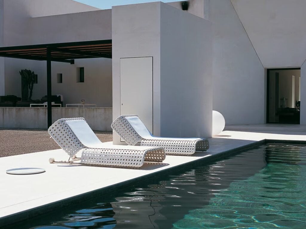 Eine reihe von sitzsystem aus makrogeflecht von polyethylenfaser-bändern weiss und bronzefarben. Zahlreiche versionen werden angeboten: runde und gerade sofas, sessel, stühle, chaise longue und beistelltische, die mit ausgesuchten einfarbigen, melangierten und gemusterten stoffen in verschiedenen farbvarianten bezogen werden können. Die äusserst komfortablen sitzsystem habenalle eine gestell aus aluminium mit klimabeständigen polyesterpulverlackierung. Sie sind in den farben weiss oder bronzefarben mit polyethylenfaser-geflecht in der gleichen farbe wie die gestell erhältlich. Der runde sitz kann mit einem leichten, rückklappbaren verdeck versehen werden, das die sonnenstrahlen bis zu 92% abhält. Darüber hinaus ist eine um 360° drehbare untergestell einsetzbar. Die Canasta kollektion wird durch tische und beistelltische in verschiedenen grössen ergänzt. Die tische haben ein aluminiumgestell, während die beistelltische in stahl gefertigt sind. Beide haben ein mit polyesterpulverlackierung-gestell, welche witterungsbeständig ist. Die gestellfarbe ist weiss für tische, weiss oder schwarz für beistelltische, während die platten mit exklusiven fliesen bedeckt sind, welche die dekore der stoffe der kollektion wiederaufnehmen.