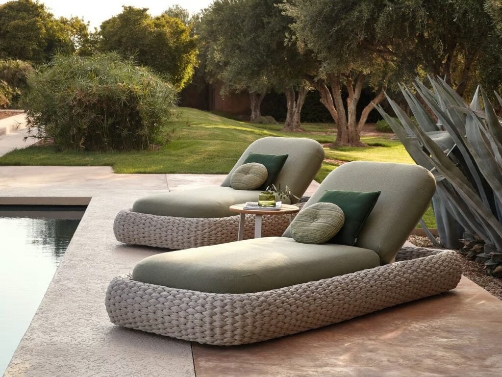 Gestell aus geflochtenem Seil Pepper oder Anthrazit, Anti-UV-Behandlung. Sitz- und Rückenkissen in einem Stück, 2 Dekokissen.