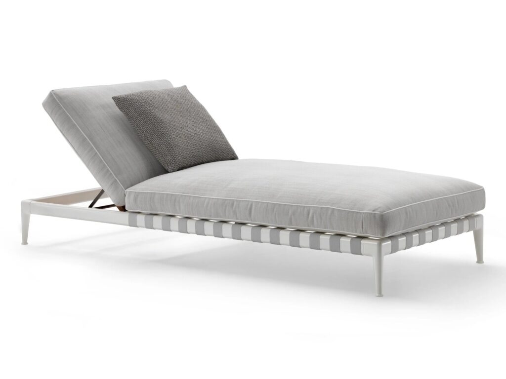 Die Konfektionierung des Daybeds Atlante ist reich an Details, die den hohen Personalisierungsgrad unterstreichen. Das Gestell aus Edelstahl mit Pulverbeschichtung ist in verschiedenen eleganten Farben erhältlich, die elastischen wasserabweisenden Riemen gibt es in den Farben Weiß, Sand, Grau und Anthrazit, sodass sich ansprechende Farbkontraste oder diskrete Ton-in-Ton Kombinationen gestalten lassen.