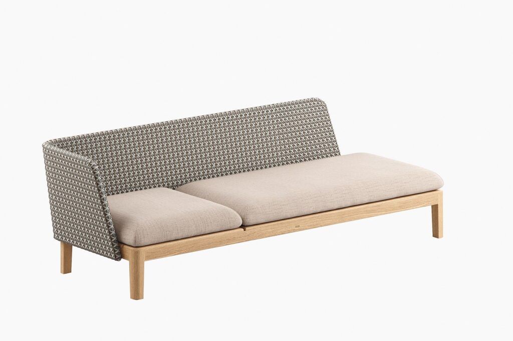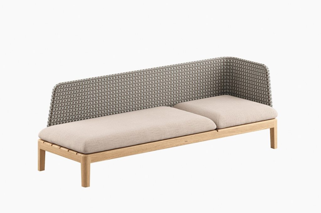 Im Jahr 2020 brachte Royal Botania den Sessel Calypso 55 auf den Markt und hat die Calypso-Kollektion seitdem um die Calypso Lounge erweitert. Die Lounge verfügt über Teakholzgestelle in drei verschiedenen Grössen - ein quadratisches Gestell von 72x72 cm, ein doppelt so grosses Gestell und ein Gestell in dreifacher Länge. Die Lounge bietet ausserdem L- oder U-förmige Rückenlehnen aus Edelstahl, die für zusätzlichen Komfort mit gepolsterten Bezügen ausgestattet werden können. Diese Bezüge lassen sich zum Reinigen und Überwintern einfach per Reissverschluss abnehmen und sind in verschiedenen Farben erhältlich. Für eine natürlichere Optik und Haptik haben wir unser originelles KRISKROS-Webmuster aus synthetischen Outdoor-Fasern in drei verschiedenen Farbtönen entwickelt. Als Alternative zur textilen Rückenlehne kann die Lounge auch mit einer gewebten Rückenlehne ausgestattet werden. Die Möglichkeiten für Arrangements und Ausführungen sind endlos.