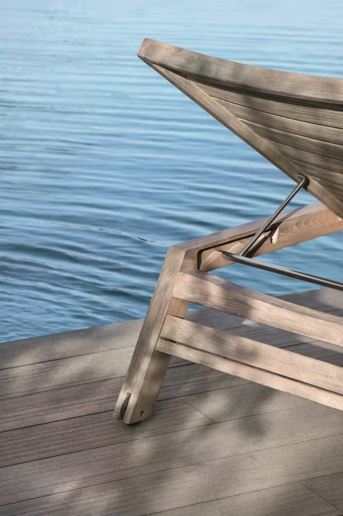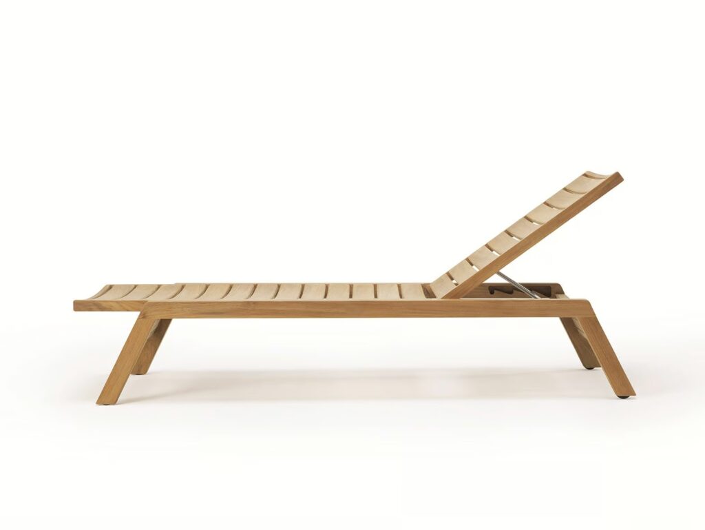COSTES Sonnenliege in natürlichem Teakholz oder in gebeizter Ausführung.