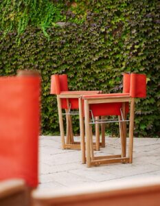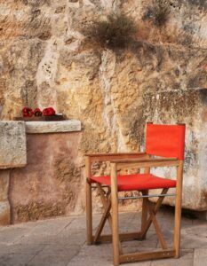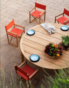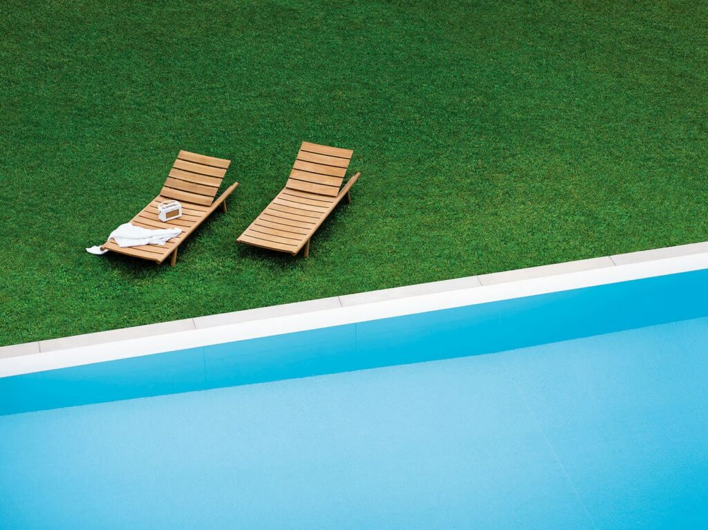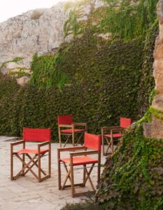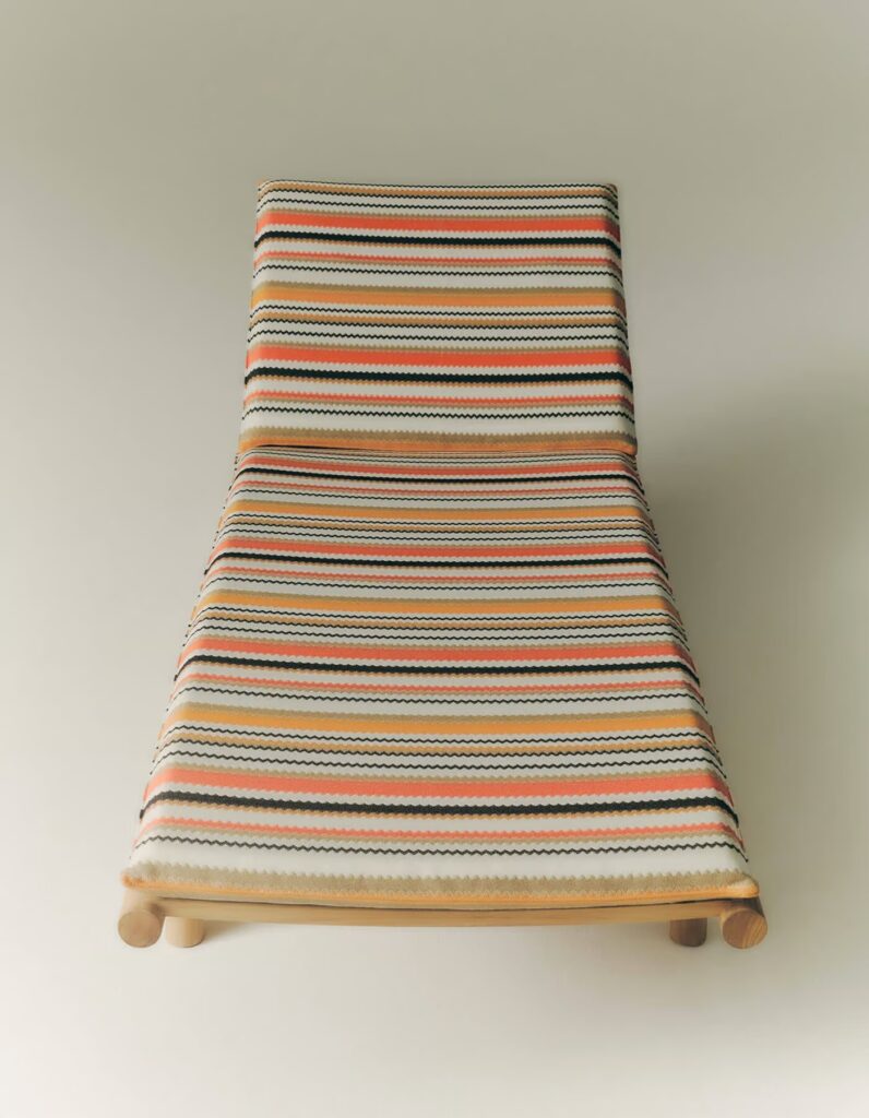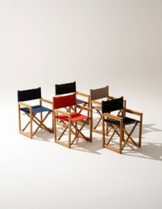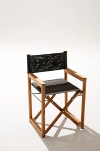 From the director's armchairs dressed in Batyline, which seem to wear evening attire, to the sun lounger designed to provide ergonomic and comfortable support, it offers a perfect balance between material, form, and color.