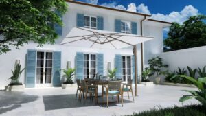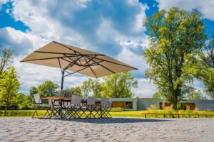 Verstellbarer quadratischer Sonnenschirm mit integrierter Heizung
