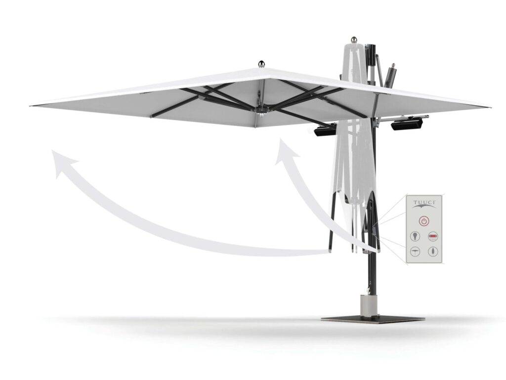 Tuuci's automatisierte Single und Dual MAX Cantilever Beschattungsplattformen definieren die Beschattungstechnologie neu. Automatisierung und Beschattung sind nahtlos in unsere komfortable und intuitive Druckknopf-Schnittstelle integriert. Beschattung, Beleuchtung und Heizung werden durch ein One-Touch-Bedienfeld mit intelligenten Sicherheitsprotokollen auf Knopfdruck lebendig. Eine ganz neue Ebene des intelligenten Designs ist erreicht worden.
