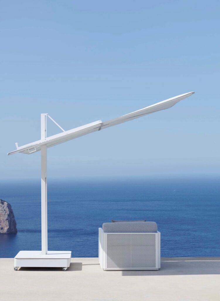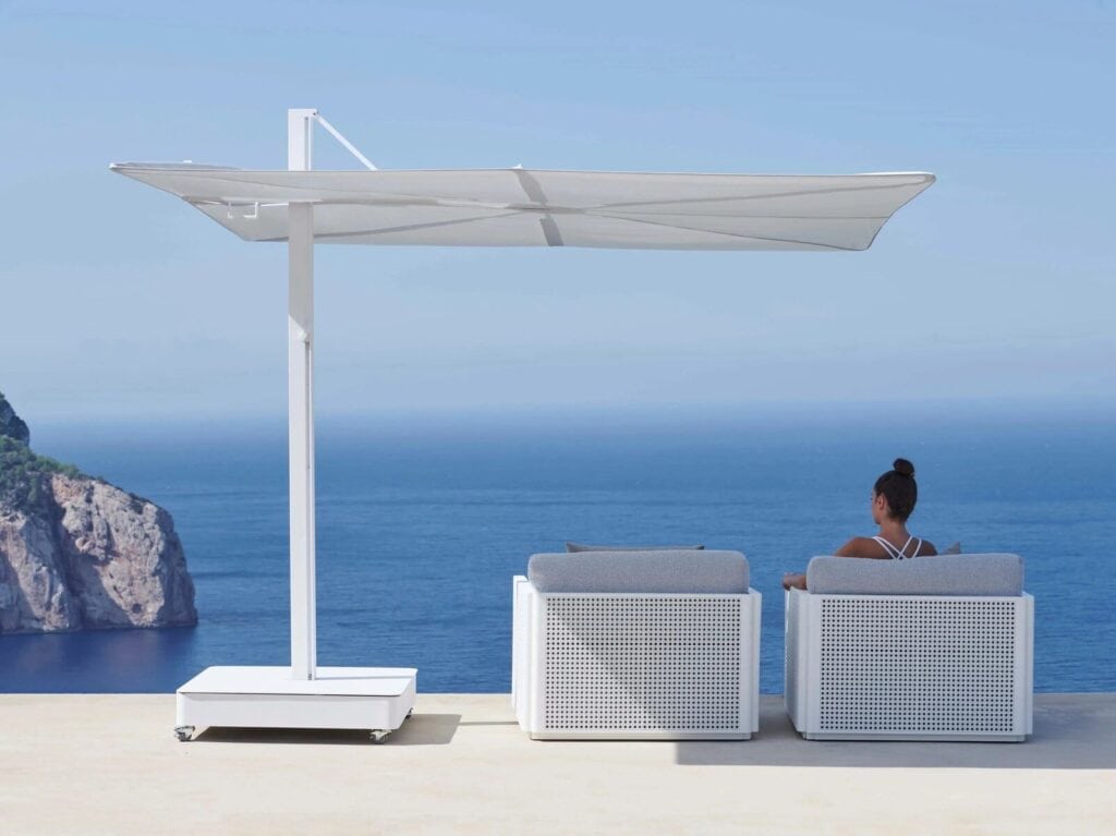 Verstellbarer rechteckiger Sonnenschirm.