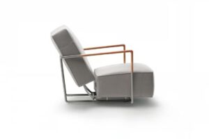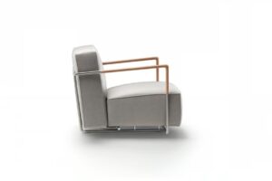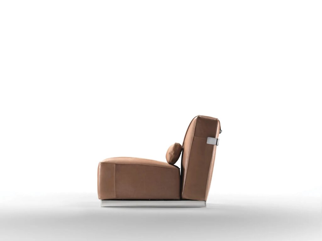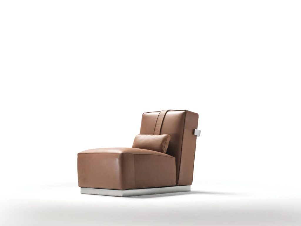 Der Sessel A.B.C.D. ist die Re-Edition des berühmten Sessels A.B.C. aus dem Jahr 1996. Die neue Variante von 2014 präsentiert einige, grundlegende Veränderungen, wie ein neues Design des Bodengestells und das Weglassen der Armlehne, was der neuen Version eine weichere Note gibt. Die Metallstruktur des Sessels ist verchromt, satiniert, brüniert, schwarz verchromt oder champagnerfarbig erhältlich. Der Sessel A.B.C.D. kann von dem gleichnamigen Pouf als Fußstütze begleitet werden und ist mit einem interessanten Mechanismus versehen, um die Rückenlehne zurückzuneigen. Er kann weiterhin mit einem eleganten Accessoire ergänzt werden: Ein bequemes Kissen als Kopfstütze mit Daunenpolsterung und einem Gegengewicht aus Metall. Der Sessel A.B.C.D. erhielt eine Ehren-Nennung von der renommierten, internationalen Jury des XXIV. Preises für Industriedesign, Compasso d’Oro, verliehen vom ADI (Verband für Industriedesign).