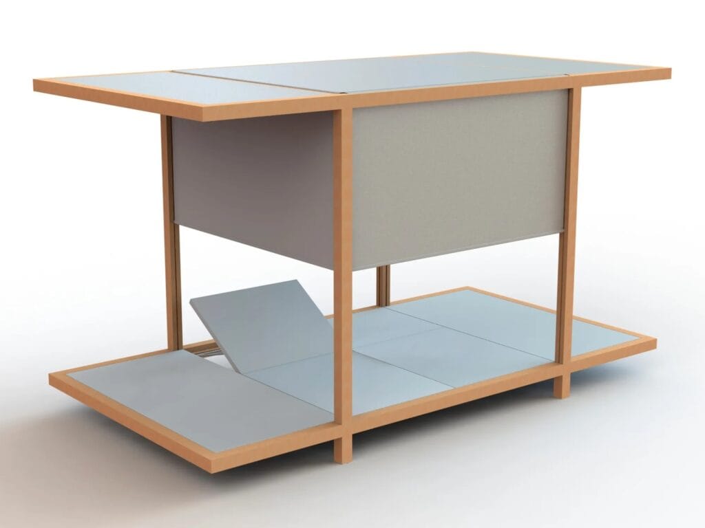 Die Platten, aus denen die Plattform Toku besteht, können durch unabhängige Rückenlehnen in der gewünschten Position ergänzt werden, die aus geschäumtem Polyurethan mit Ballast bestehen (Rückenlehnen der Serie Orlando).