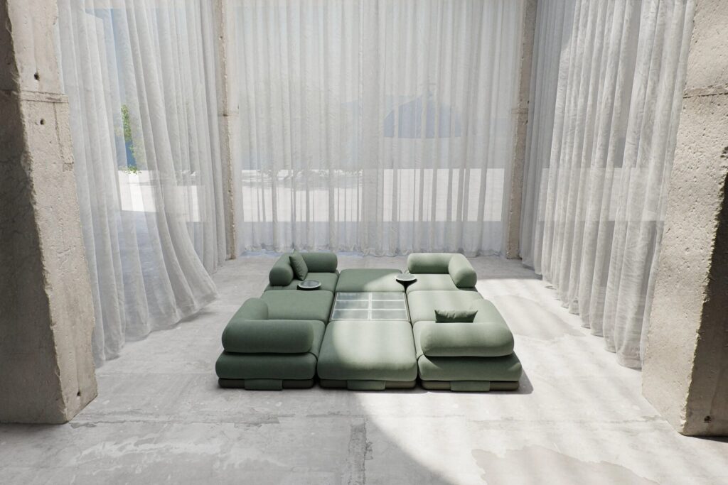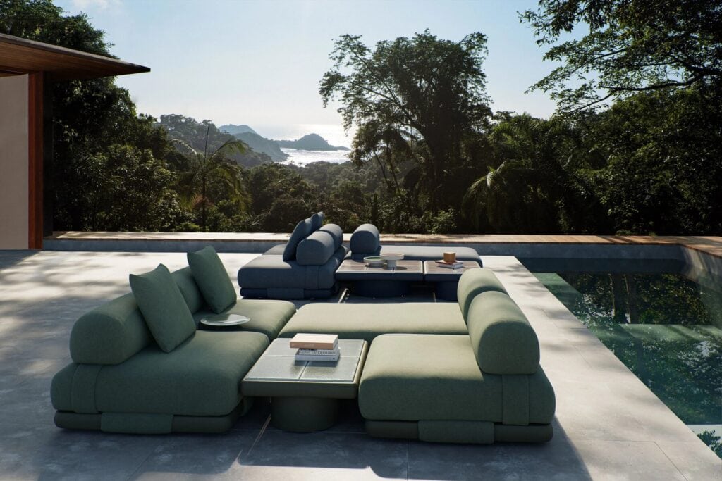 In seiner Funktion dient das Sofa INSULA wie das ursprüngliche Majlis vor allem der Geselligkeit. Dank seiner zahlreichen Konfigurationen kann es an alle Arten von gesellschaftlichen Zusammenkünften angepasst werden, sowohl im Innen- als auch im Außenbereich: vom Empfangsbereich im Büro, wo es einen entspannenden Arbeitsplatz bietet, bis hin zum Haus, wo man sich entspannen kann, oder im Freien, um sich zu sonnen und Spaß zu haben.