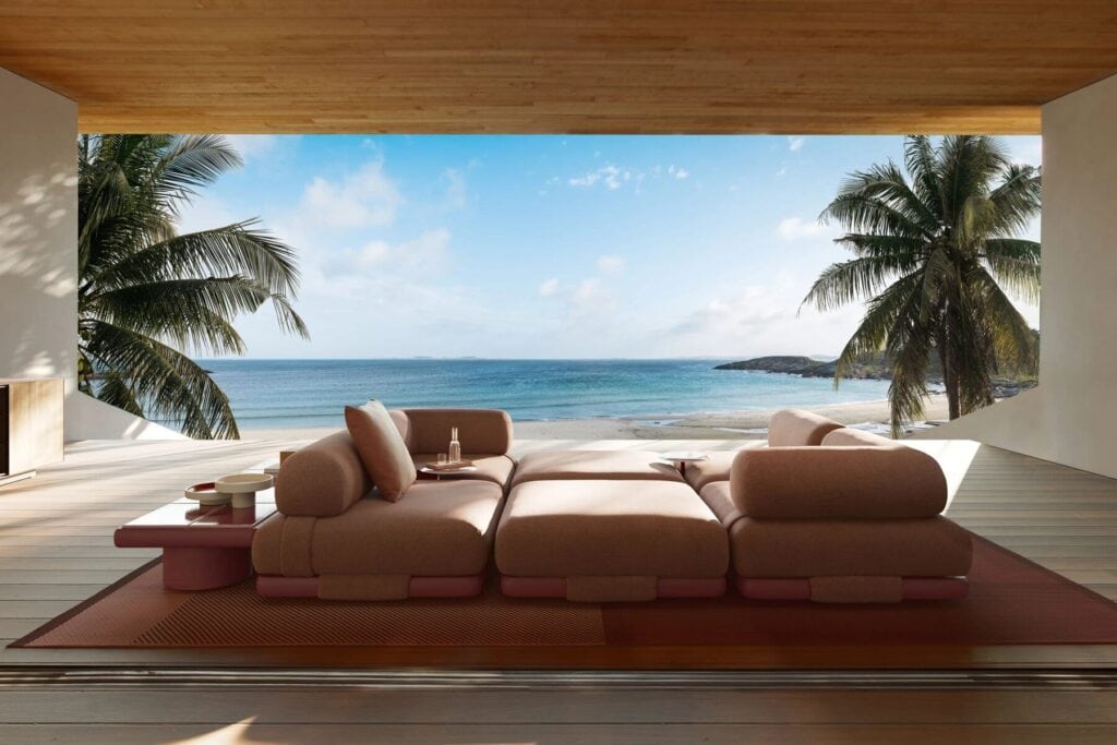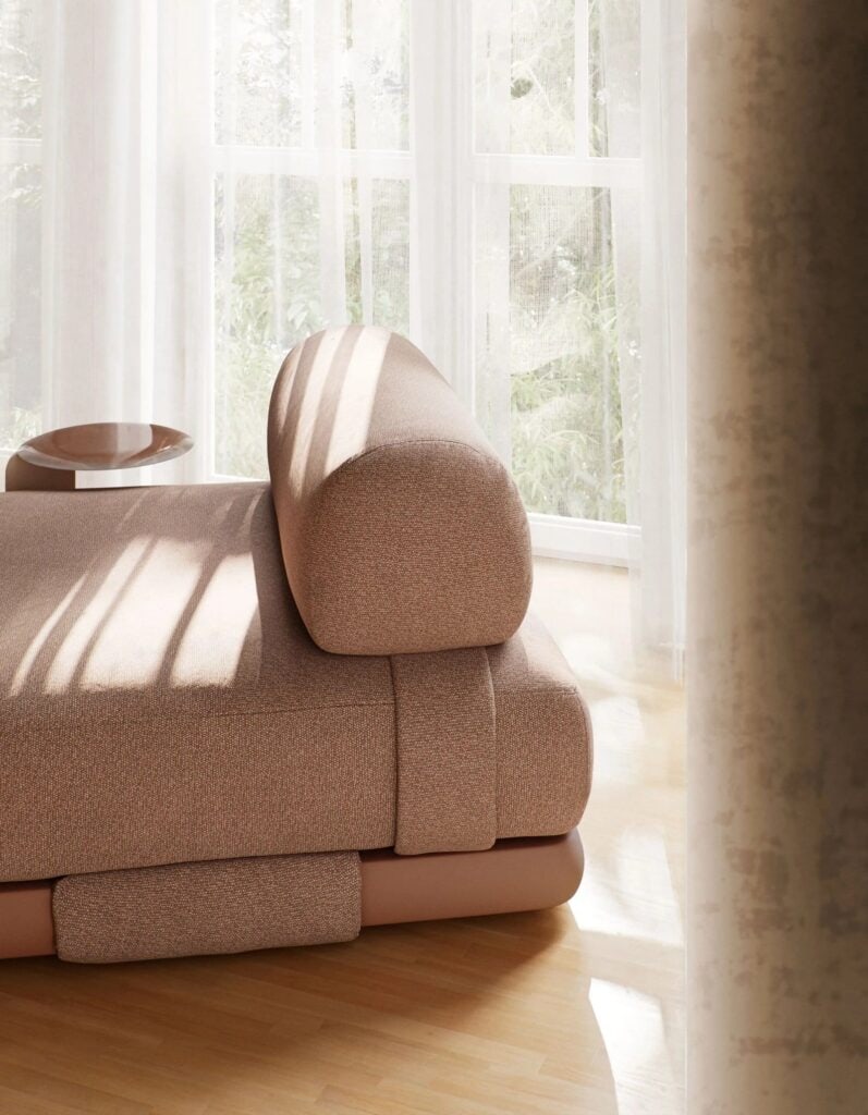 Das modulare Sofa Insula ist Patricia Urquiolas aktualisierte Version der traditionellen Sitzgelegenheiten in arabischen Majlis, in denen sich die Mitglieder der Gemeinschaft versammelten, um Ereignisse und lokale Angelegenheiten zu besprechen, Gäste und Freunde zu empfangen und zu unterhalten.
