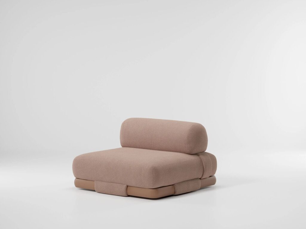 Das modulare Design besteht aus einem orthogonalen Aluminiumgestell mit sehr glatten Linien und dem weichsten und bequemsten Sitzkissen. Die Sitze sind in zwei Größen erhältlich, so dass verschiedene Arten von Rückenlehnen verwendet werden können: einzeln, doppelt, eckig usw.